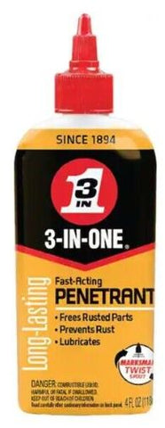 3-In-One Fast-Acting Penetrant quickly loosens stuck parts and prevents rust. Penetrates up to 3 times faster than other penetrants. Marksman spout for easy precision application. Great for use on tools, hinges, nuts, and bolts . Safe for use on plastics, rubber and metal. Get projects done, and done right.