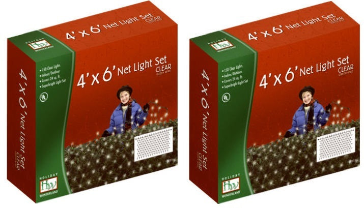 Holiday Wonderland 48950-88 150 Light Count 4' x 6' Clear Net Christmas Lights - Quantity of 2