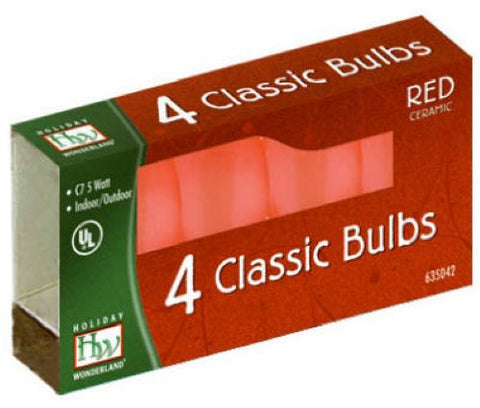 Holiday Wonderland, 4-Pack, C7, Red, 120V, Candelabra Base Replacement Bulbs