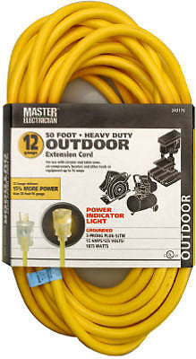 Master Electrician, 50' 12/3 SJTW-A YELLOW Round Vinyl Extension Cord,