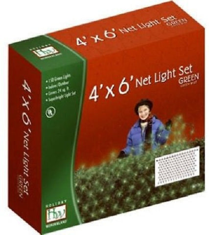 Holiday Wonderland, 150-count, green bulbs net style Christmas light set. This net light set can be used indoor & outdoor. The set has green wire with smooth incandescent bulbs. Great for holiday, events and party decorations.