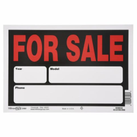 - Hillman 839932 8" x 12" Black & Red Automobile For Sale Sign - Quantit