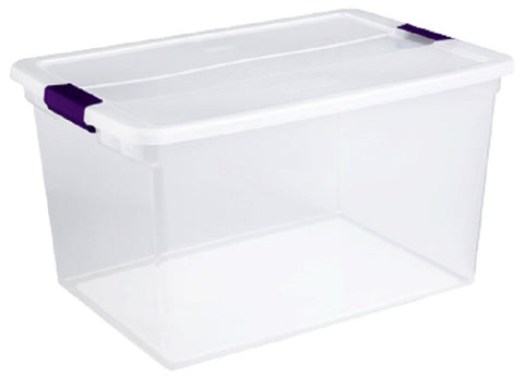 6 qt, clear view latch box with plum latches, ergonomic latches that attach the lid securely to the base yet are still easy to unlatch, allow contents to be easily identified from any angle & multiple bases are able to stack on top of each other, ideal for storing shoes & other small items around the home & fits conveniently on 16" wire closet shelving.