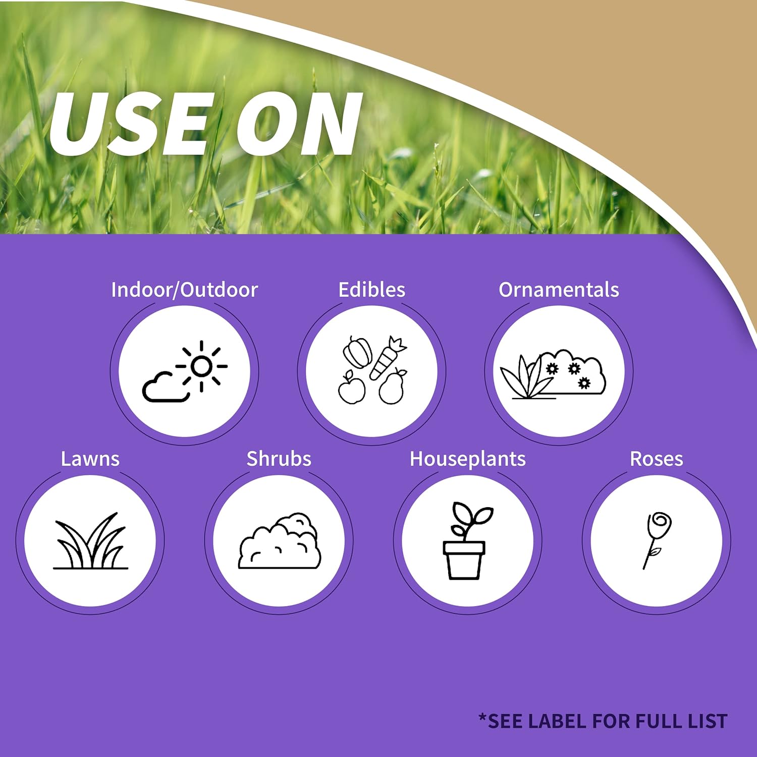 - Also for use on listed fruit & nut trees, vegetables, vines, ornamentals, and lawns
