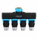 - Metal Full Flow 4 Way Garden Hose Splitter with Shut Offs