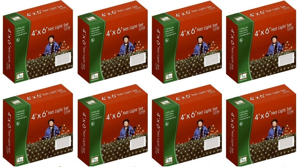 Lot Sale of (8) New Holiday Wonderland 4 ft x 6 ft, 150 Count Clear Christmas Net Lights by Inliten