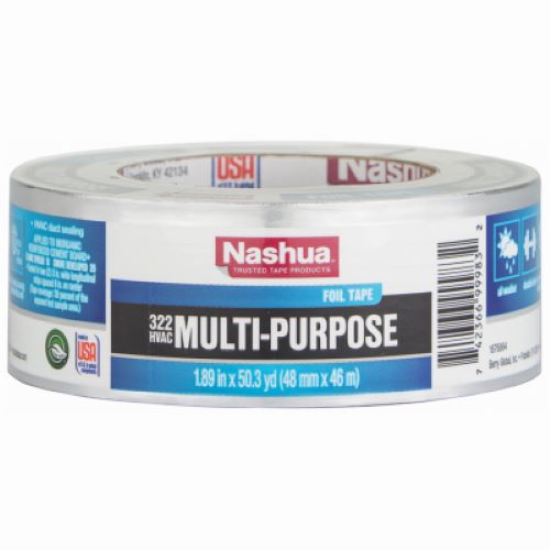 - Nashua 322 1541239 1.89" x 50 Yard Roll Of Silver HVAC Foil Tape - Qua