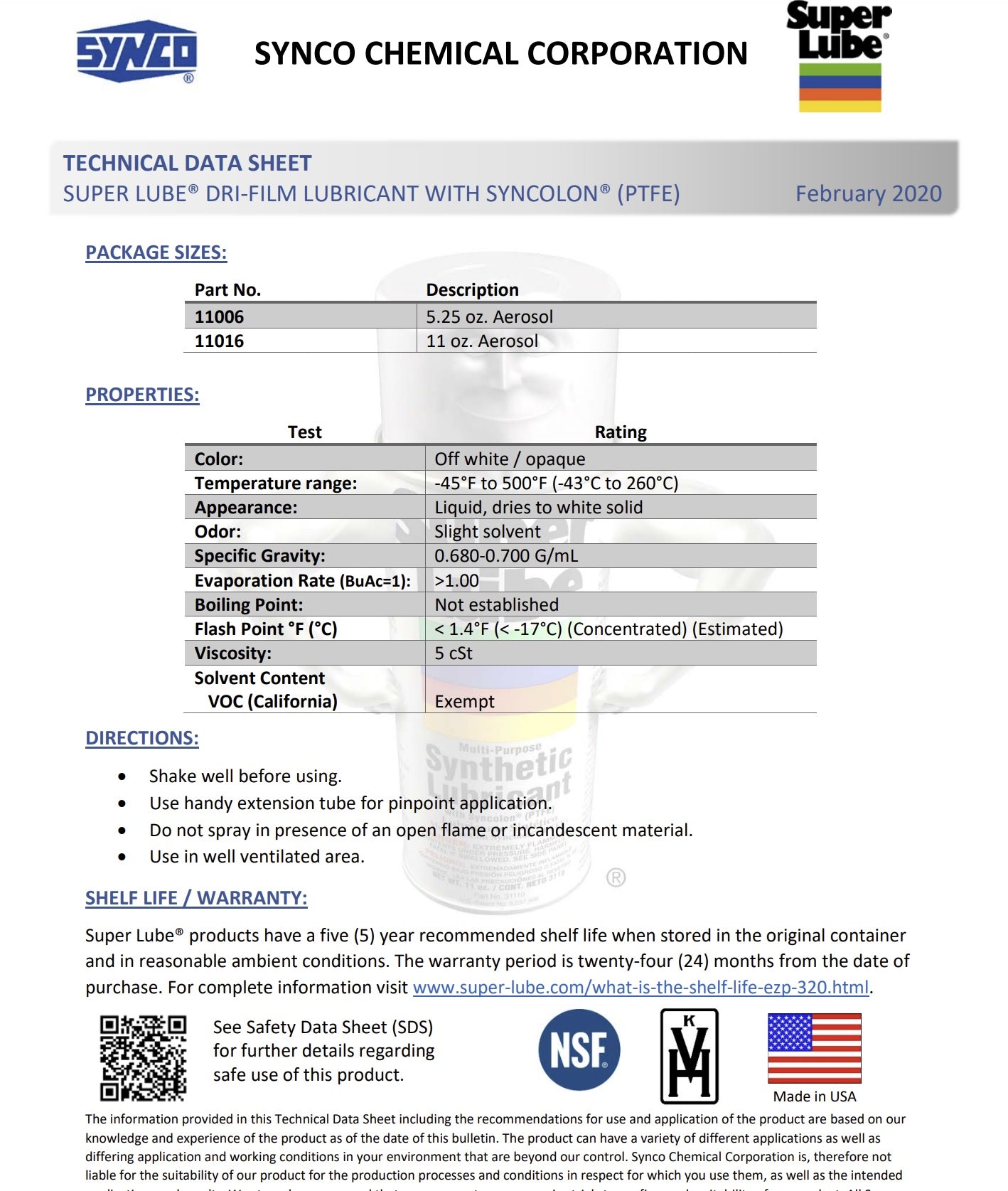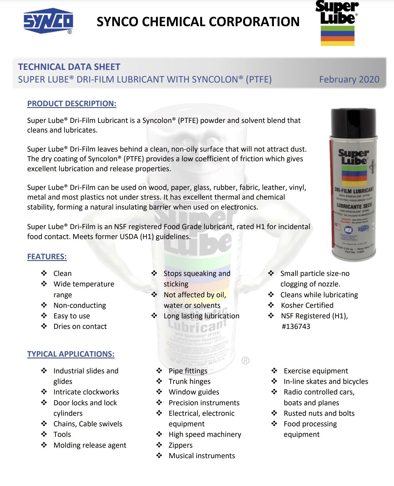 - Synco Super Lube 11016 11 oz Can Of Dri-FIlm Lubricant - Quantity of 6