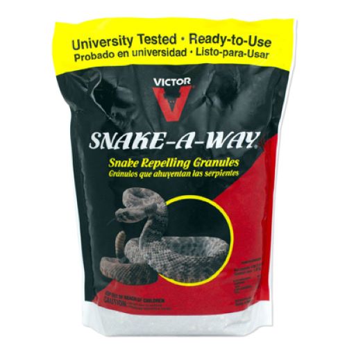 Victor 4 LB bag of Snake-A-Way snake repellent granules. The world's only university tested, patented & EPA registered snake repellent. This repellent is highly effective against non poisonous & poisonous snakes. The repellent granules will last 2 - 3 months and will not be destroyed by normal rainfall.