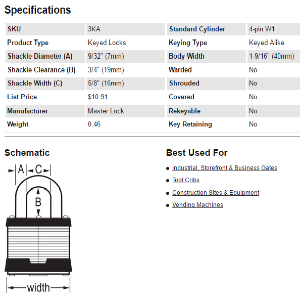 Master Lock 3KA-3447 1-1/2" Inch Laminated Keyed-Alike Padlock Master Lock 3KA-3447 1-1/2" Inch Laminated Keyed-Alike Padlock Master Lock 3KA-3447 1-1/2" Inch Laminated Keyed-Alike Padlock