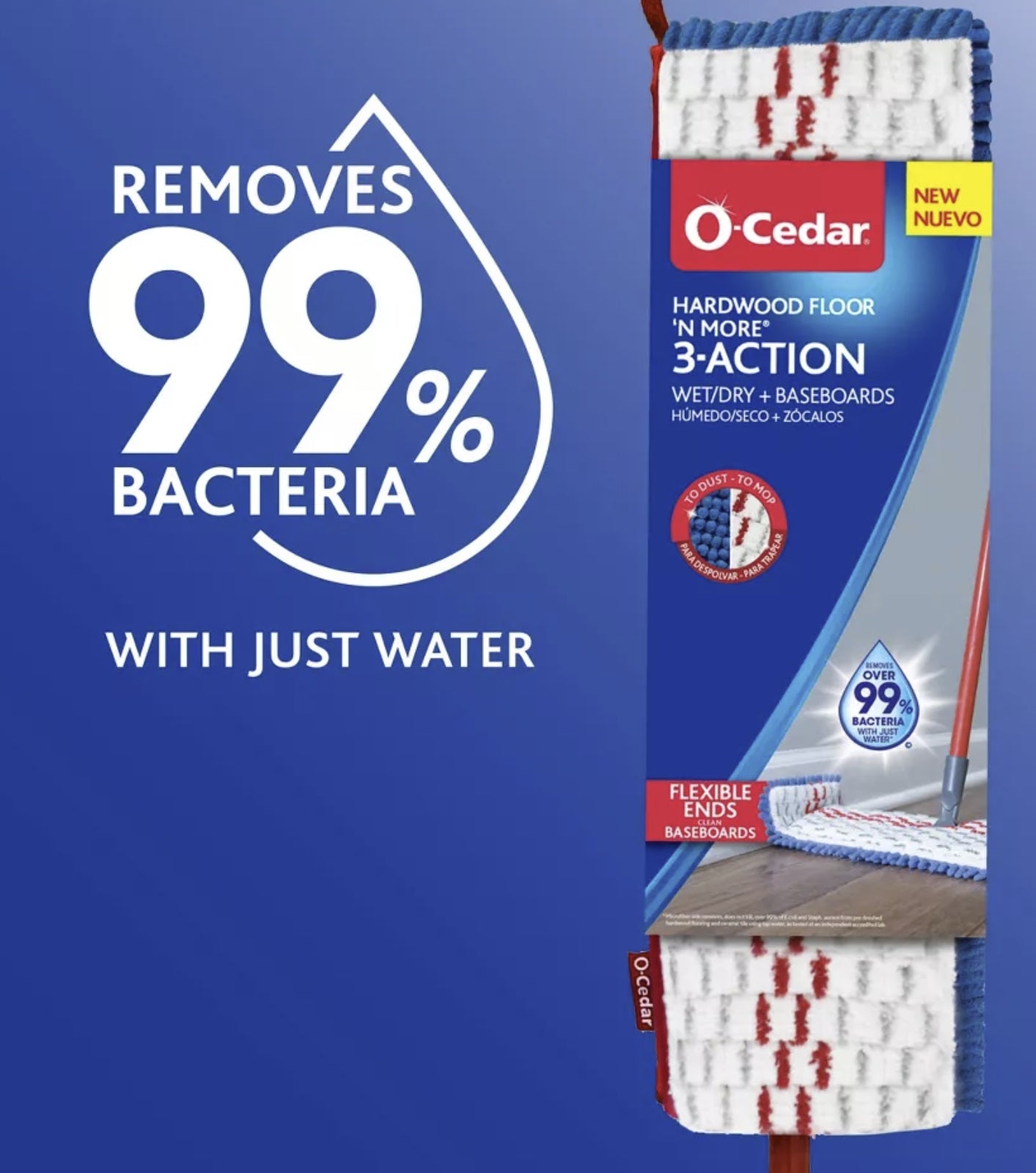 Designed for use with the O-Cedar Hardwood Floor ‘N More 3-Action Mop. This washable and reusable refill features ultra-dense chenille on one side for dry dusting and particle pickup and microfiber on the other for wet mopping floors and ceilings.