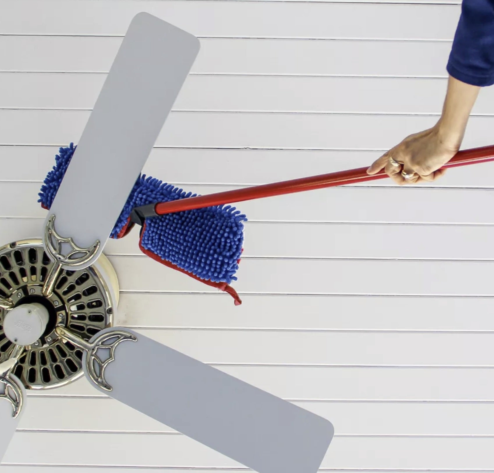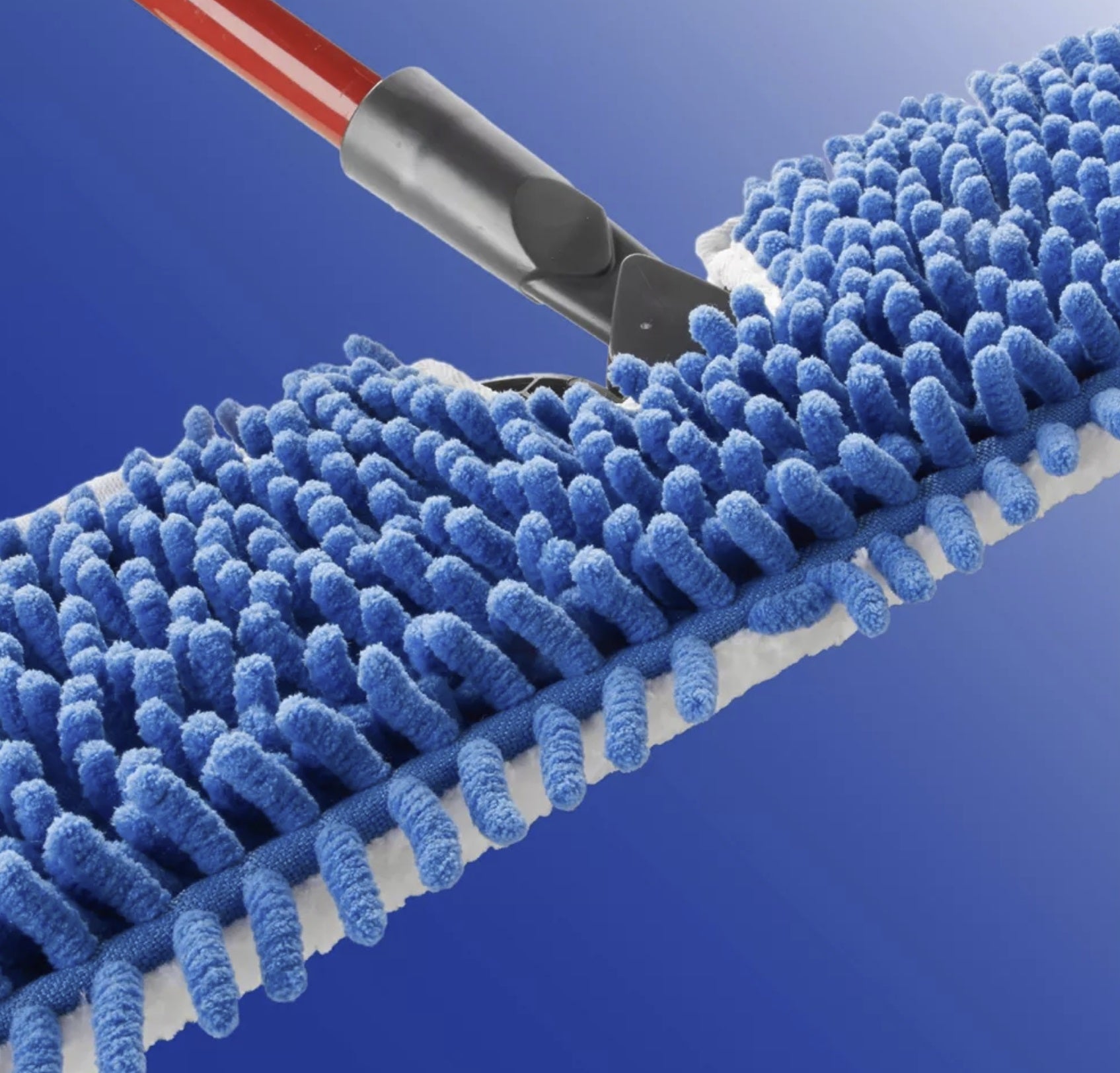 Double-sided mop head features ultra-dense chenille to attract dirt, dust and hair & powerful microfiber to wipe out dirt, dust and grime